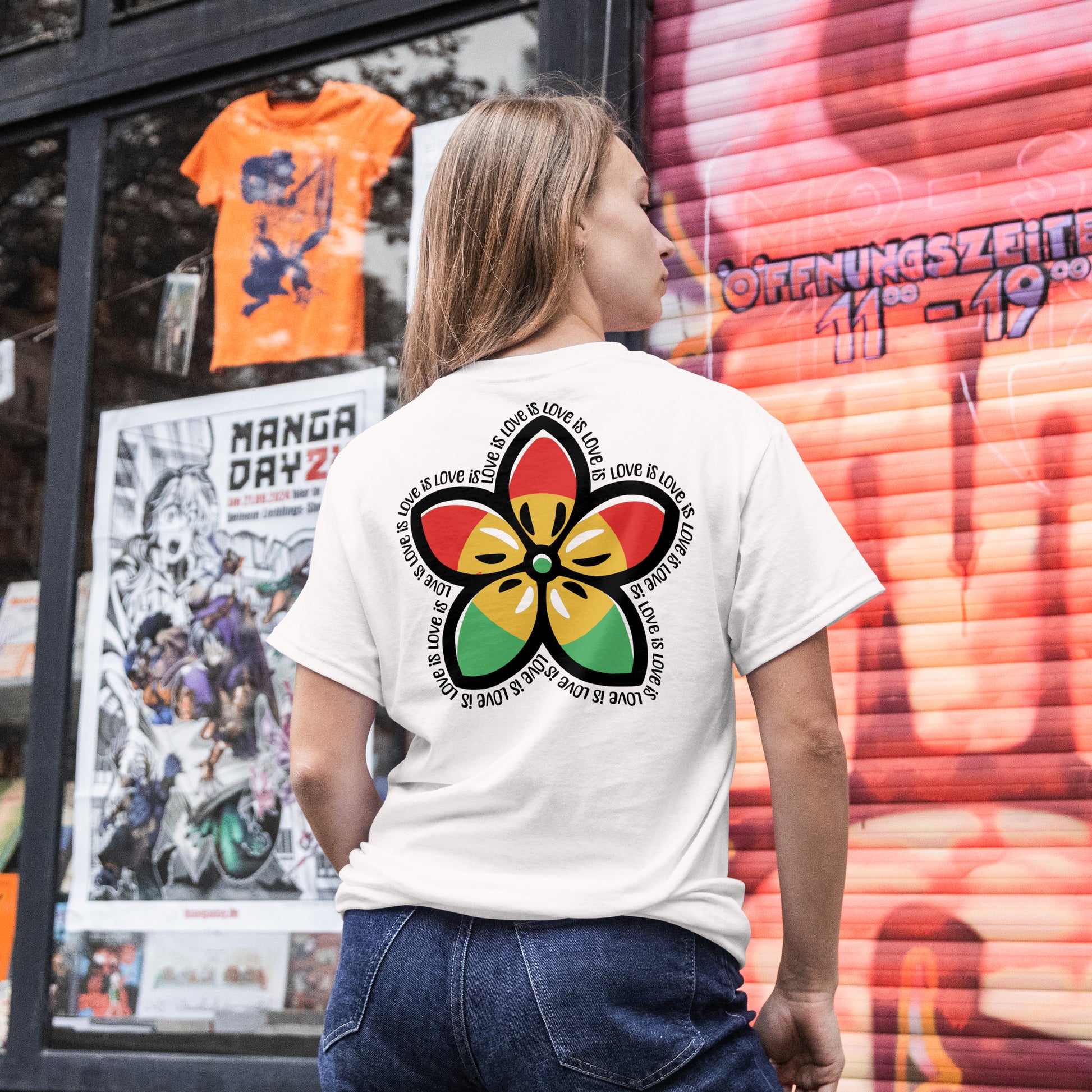 A soft, everyday Love Is Love T-Shirt that carries big energy—reggae colors blooming into a five-petal flower. Front chest hit + bold back print keep the message moving with you. Clean, modern fit that dresses up or down—made for street, shows, and sunny days.